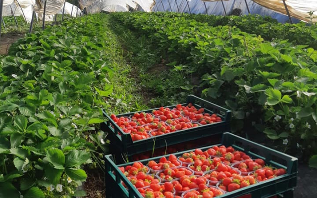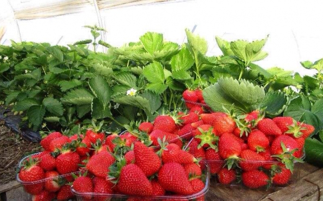 Fraises, bœufs, œufs, pommes de terre, jus de pomme, jus pomme-fraises, jus pomme-rhubarbe, jus pomme-poire, Self fraises début Juin